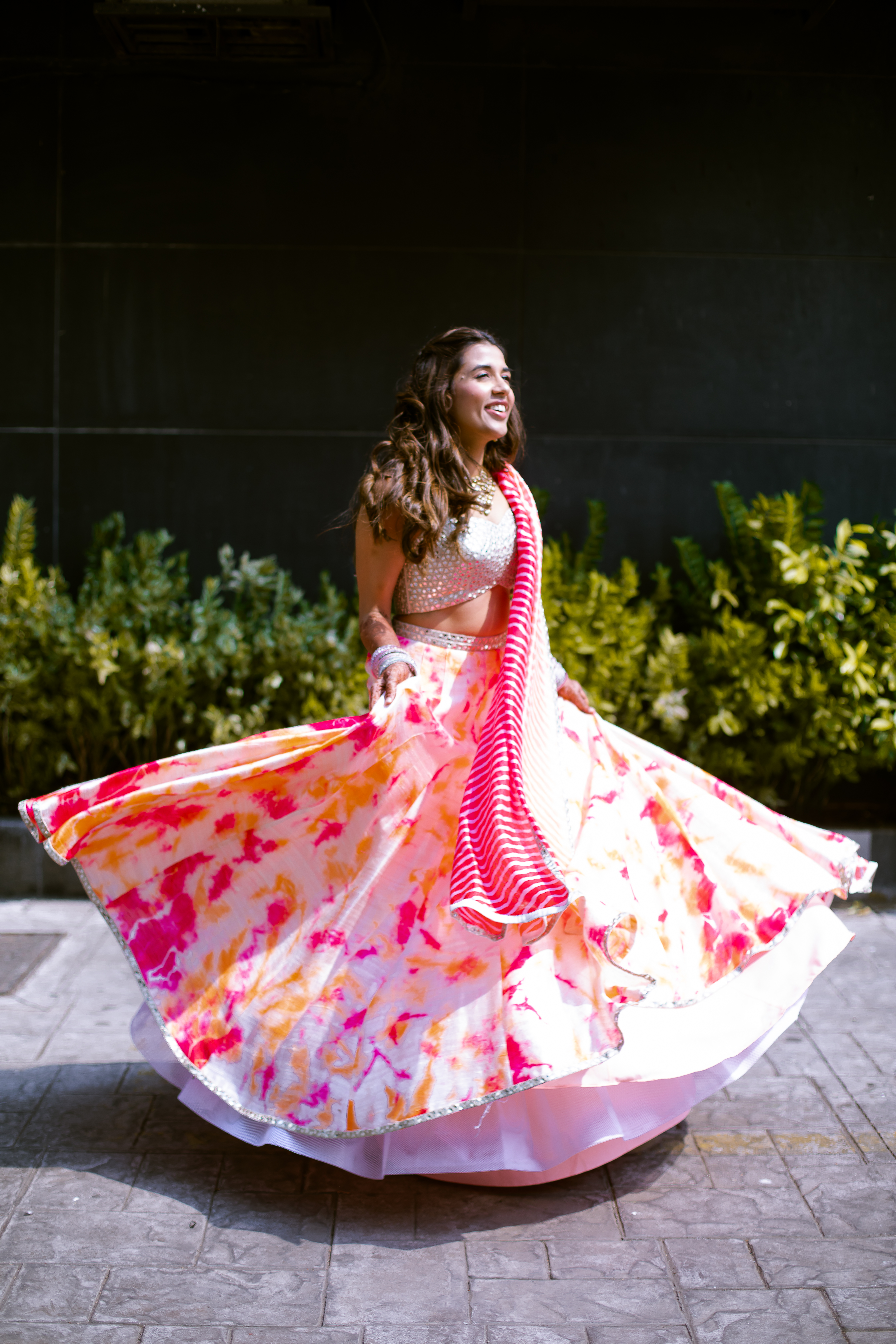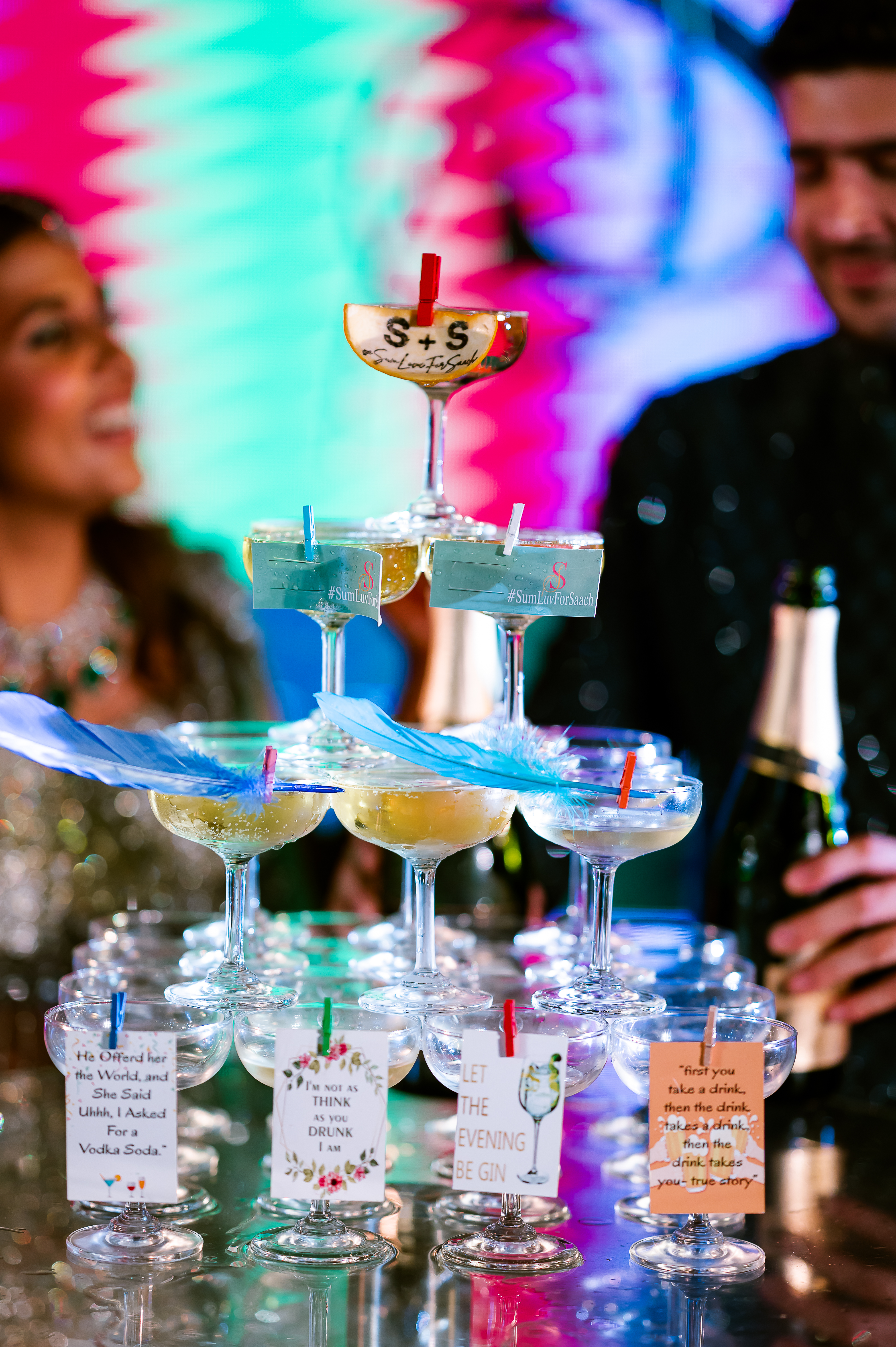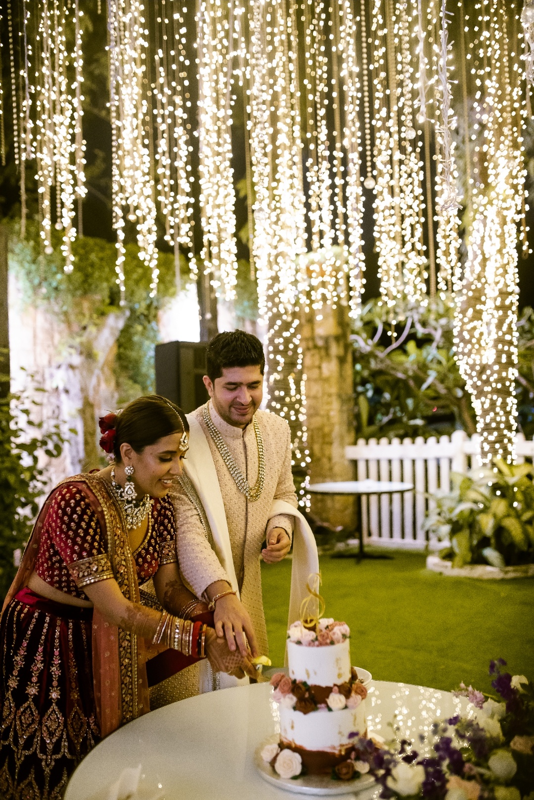 Sharing about the day she has always been excited about, Saachi shares, “For both Sumil and me, our family traditions hold a great value. We wanted to reflect our background and culture into our wedding while also living out our fantasies. Our first cocktail was inspired by Japanese culture. Right from the drinks to the decor, the entire vibe was to bring my hometown to Bombay while our Sangeet was more about a tropical wonderland filled with greenery, florals and lots of different personalized moments for our guests to remember. I always imagined myself having an outdoor wedding, something about open-air just makes me feel calm and relaxed. Gallops, at the racecourse, was the perfect space to host our classical and traditional wedding day. The beautiful lights and charming space overall lent itself to be a magical vibe for us!”