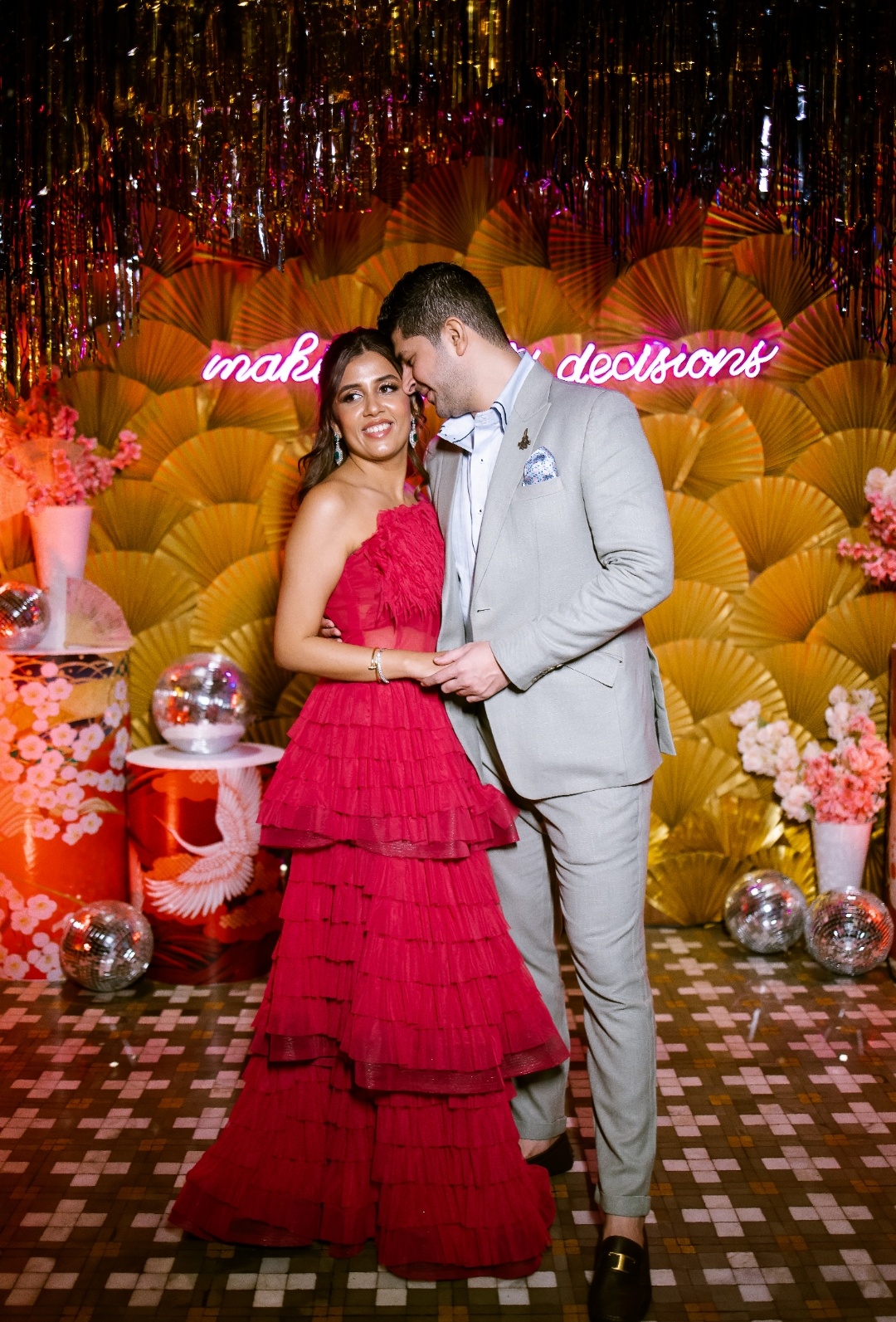 The entire wedding event was planned to keep in mind both Saachi and Sumil’s family traditions and reflect them into the wedding decor and photography. Saachi wanted to bring elements from her hometown into the wedding decor which inspired the quirky yet relaxed and minimal scheme. From the cocktail being inspired by Japanese culture to a tropical Sangeet and a traditional Indian wedding, every event had a unique blend for each of their family cultures and that’s what reflects the love and bonding between this young couple.