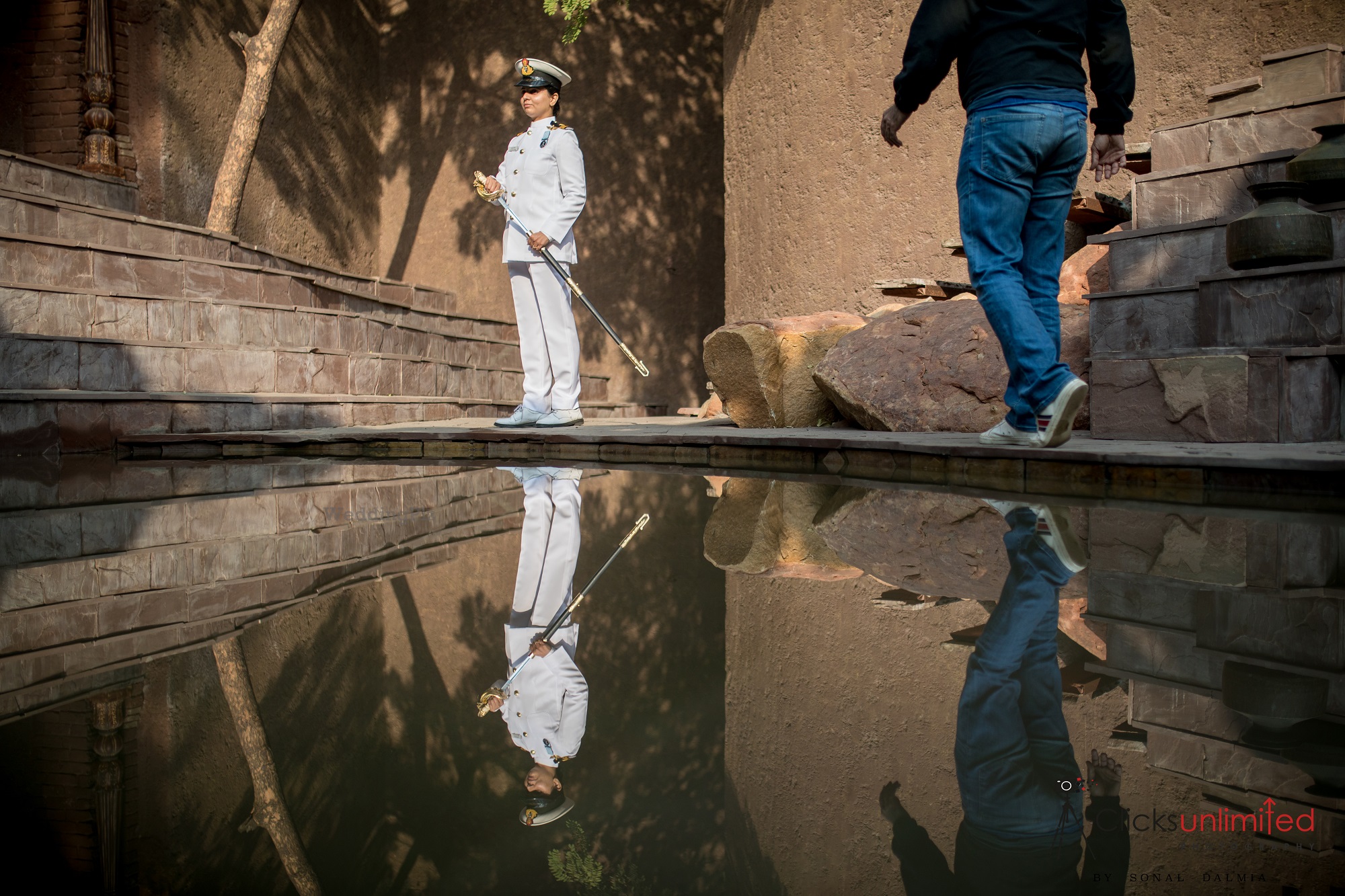 When Unfortunately on the pre wed day Ankit was held up by his Moms sickness and Akanksha didnt want to let go off the day and photographer team  ClicksUnlimited Photography   had already reached the venue and didn’t want to let go off the plans so they decided on the spur of the moment the concept of ‘The shadows of Illusion ‘ A shadow of a reflection of an image of an illusion. and this is how the beautuful concept turned out!