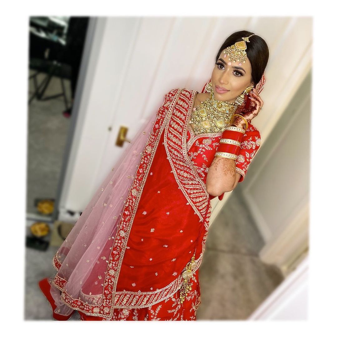 These winsome brides made us go WOW with their shots in an exuberant red lehenga! The front dupatta is dropping from a shoulder just like it is carried sideways with a salwar suit and another one is over the head.