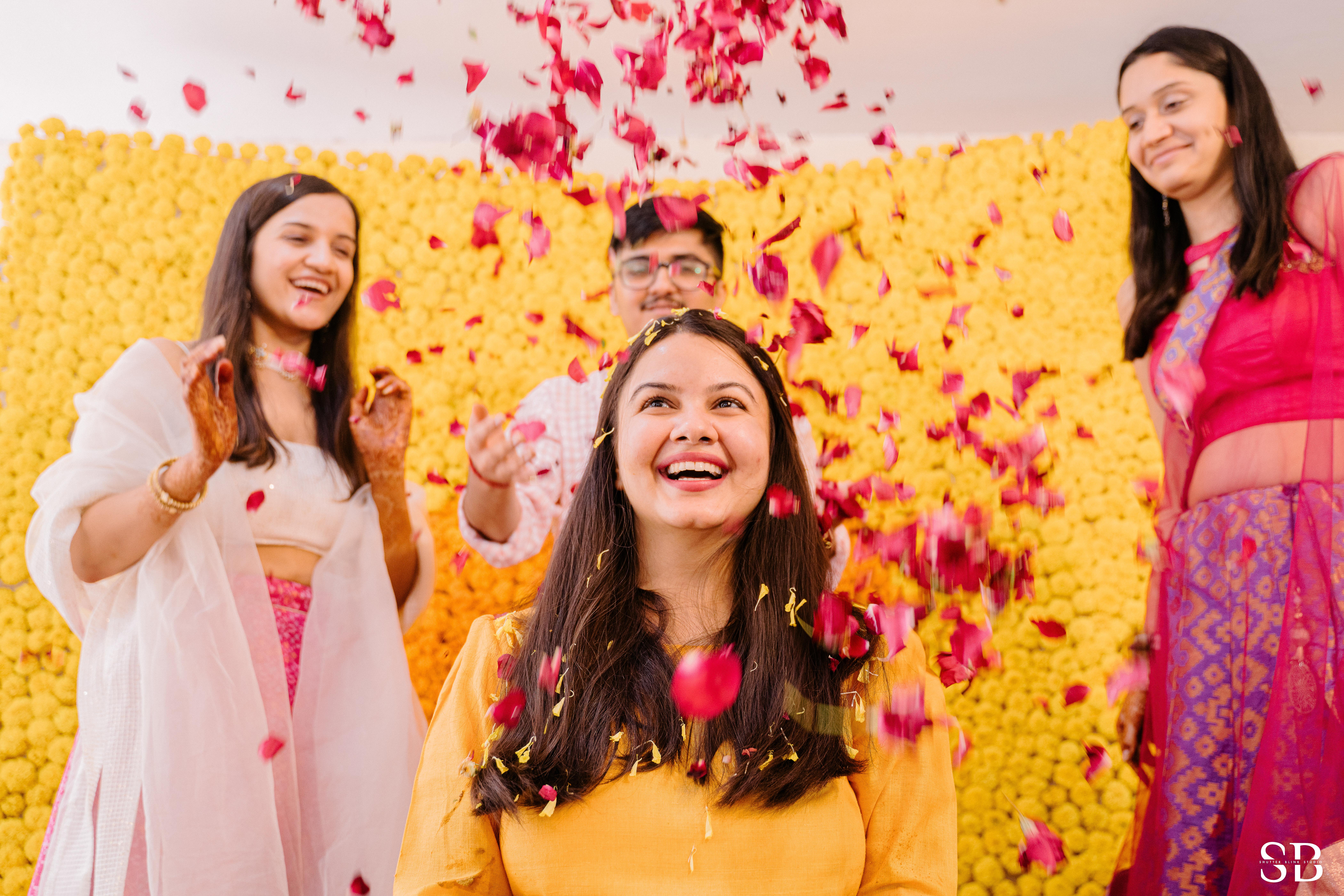 Mehndi Outfits : K Closet 16| Mehndi Decore : Bougainvillea Shikha| Groom Sangeet Outfits: Jadebluelifestyle| Bride Sangeet Outfits : Pooja Keyur| Venue of Sangeet : Welcome Hotel ITC Ahmedabad| Bride Outfits : Pooja Keyur| Bride Makeup : Ulupiparikh| Bride Jewellery: Saj Jewellers Ahmedabad| Groom Outfits: Jadebluelifestyle| Venue & Decor by Montecristo Banquet