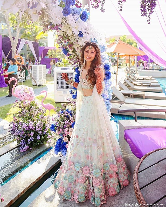 Although floral lehengas have a certain charm at the functions like mehendi that doesn’t necessarily mean that you can’t opt this design for your wedding. You can happily do it to add grace to your desired look. These floral designs have been seen to rock in every functions.Here we beautiful real brides and their stunning looks in floral lehenga which made us fall in love with. Also, we’ve found the most stunning and trendy floral lehengas which will make your jaw drop and will give you major outfit goals for your intimate wedding outfits.