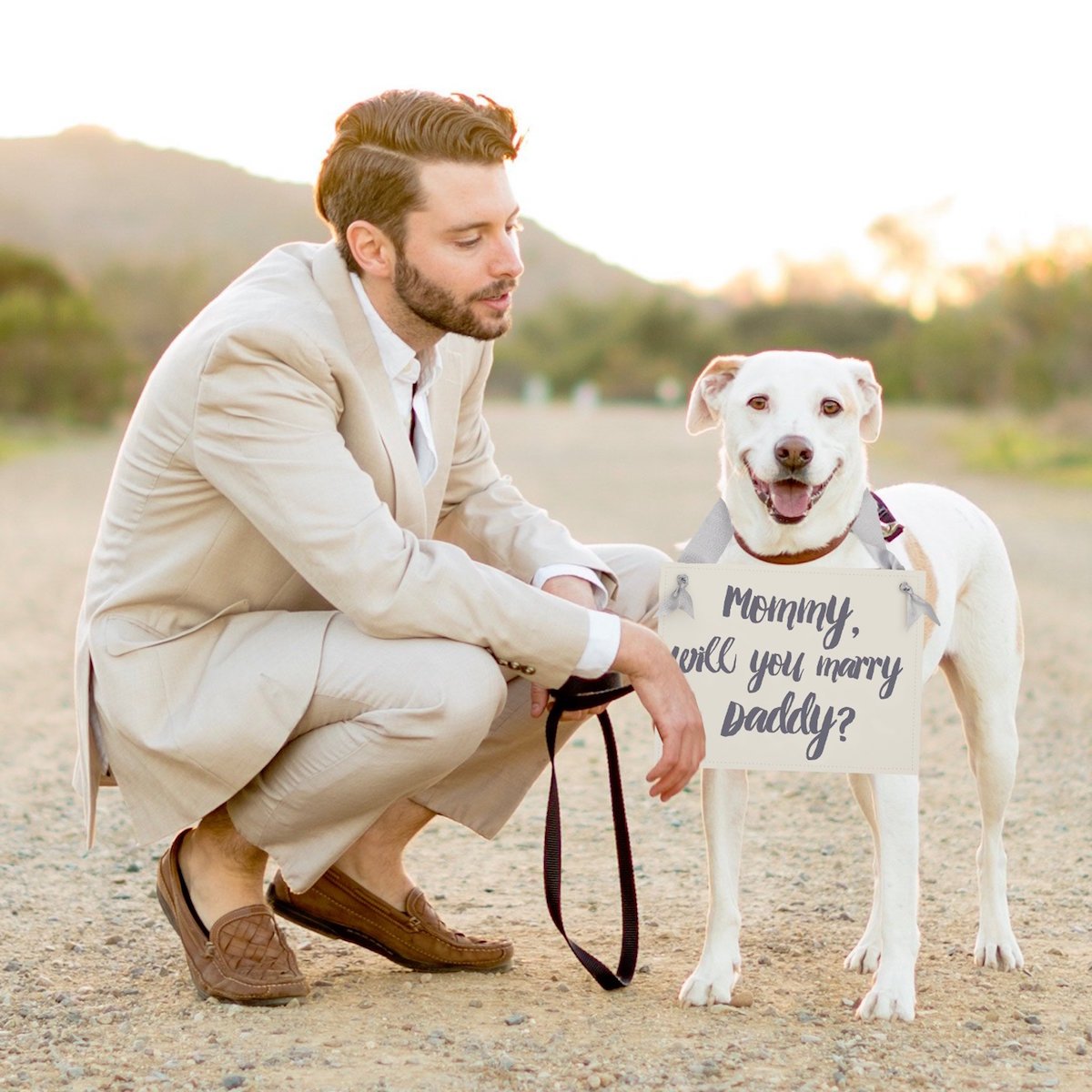 For couples with pets, choosing to involve a furry friend in the proposal will be the, “Aww” moment you’re hoping for during a proposal. Get a customized dog tag that has the big question engraved on it, or opt for a bandana.