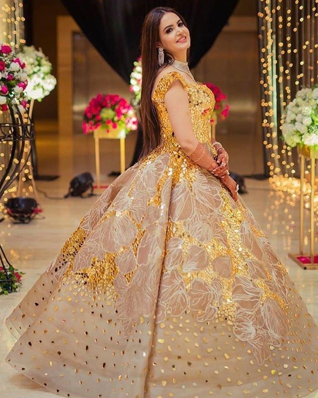 Get That Lavish Look That You Ever Want By These Stunning Lehenga & Gowns In Gold On Your Reception!