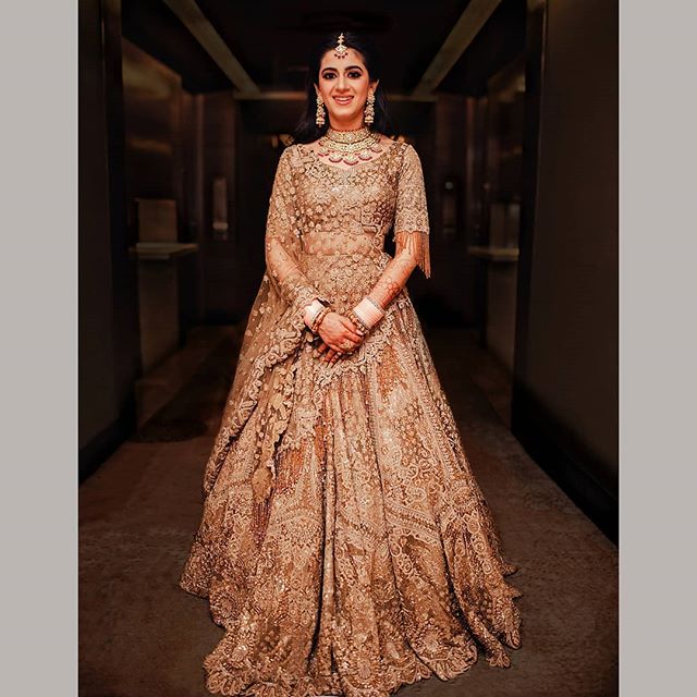 So dear all brides don’t get so much worried about. To get a different and unique look think of something different and that is gold. We know that bright and colorful outfits are in traditions that have been followed for so long. But if you are a bride of different taste then you can easily opt for gold in your outfit as gold is thought to bring the glow on your face. Here we have listed some really stunning lehengas and gowns in gold. Gold has its own legacy and beauty so just pick one that will best for you to give that shiny look all the time in reception. Come and have a look, you will a definite goal of your wedding lehenga and get that unbelievable exquisite look.
