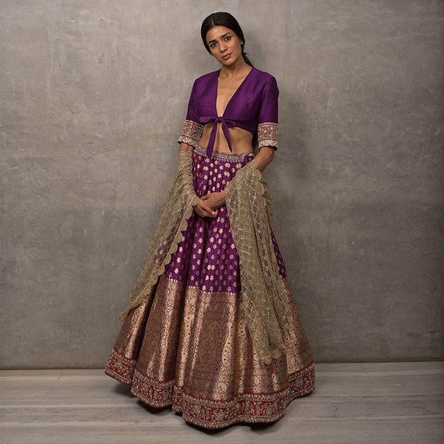 # Lehenga in monochromatic purple color is something look so exquisite.