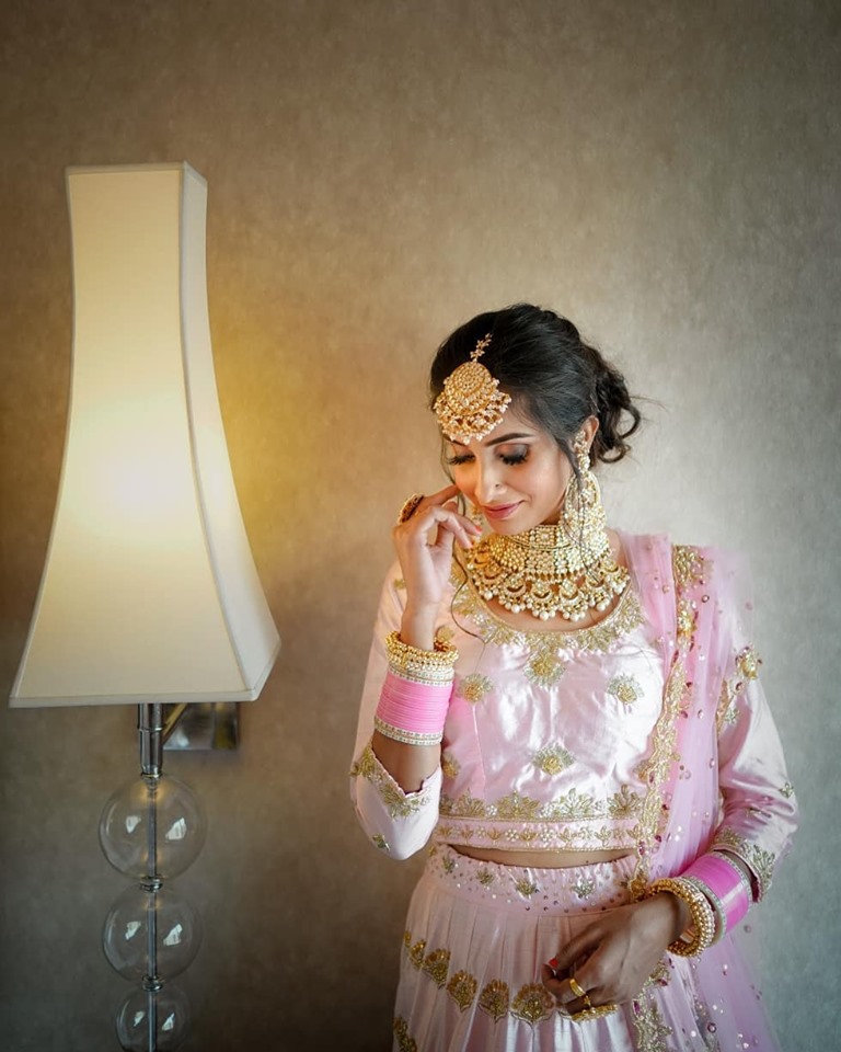 Colourful choodas like pink, peach and orange are too much in trend. Just match the colour of your Chooda with the lehenga. Also, if you wish to go more creative get your Chooda customised with pictures printed on them or name of the groom engraved in it.