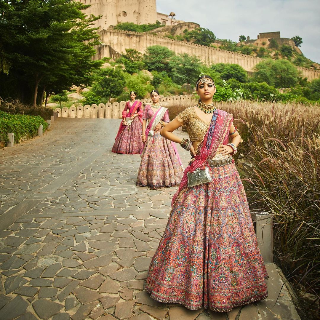 @jade_bymk presents their collection, “Bani Thani- Be Your Own Kind of Beautiful.” Their latest showcase is a unique and experimental spin on miniature paintings brought to life with intricate details & vibrant colors on exquisite ensembles. The line features Leheriya, a form of tie & dye technique that captures the wonder of Rajasthan’s artisanal heritage. Celebrating age-old techniques, Jade by Monica celebrates the old-world charm with a modern twist with their exquisite line perfect for brides.