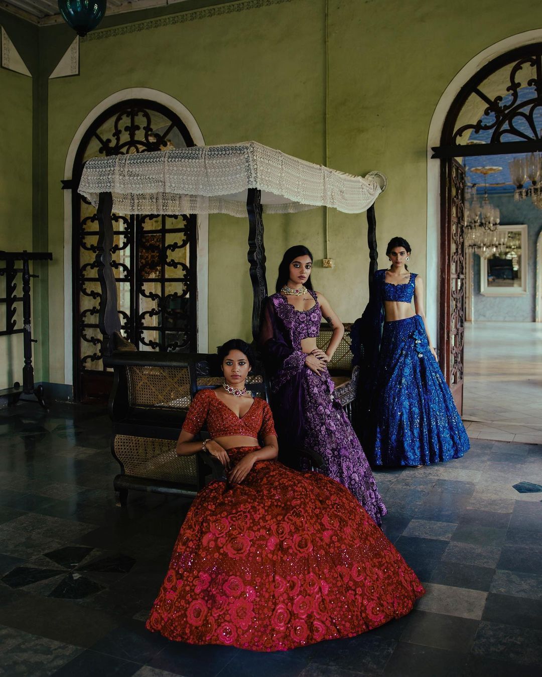 Designer @abhishekguptabenares’s ‘Homecoming’ collection is like an ethereal experience. The collection is deeply rooted in tradition yet transcends every cultural barrier with its jewel tones like Burgundy, Teal Green, and Prussian Blue and fabrics like fine silk and sheer nets. Shot in the holy city of Benaras, each ensemble weaves in the designer’s feeling of homecoming with traditional motifs and the label’s signature techniques of fine appliqué, pleating, textures, and quilting.