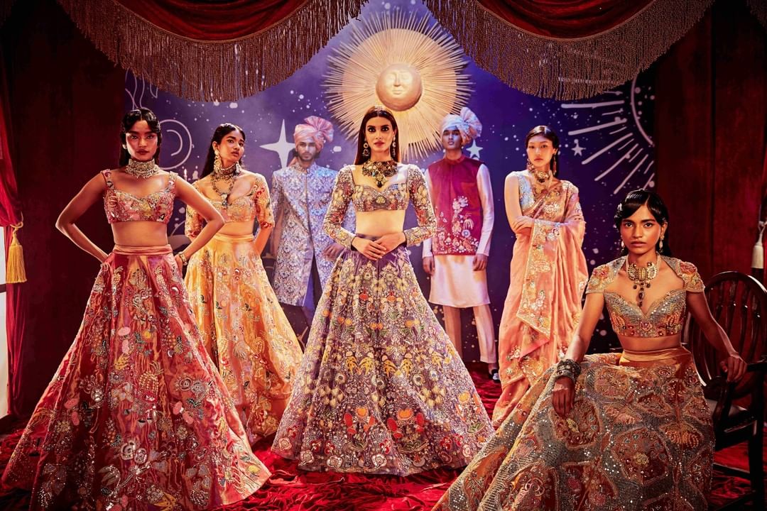 Tarun Tahiliani’s spectacular collection is a myriad of vibrant colors, embroideries, and crafts.