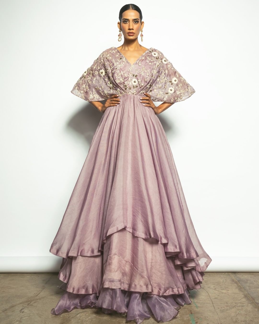 ‘Paper Dolls’ by Aisha Rao @aisharaoofficial showcased a collection that is inspired by 18th and 19th-century bards dressed in fine silks and embroidered woolens. Aisha’s garments, infused with a mix of fine tissue, organza, tulle, and raw silk, saw a wide range of ethnic outfits. With a heavy focus on techniques such as applique, aari, and zardosi, amongst others, this collection shows the designer’s individual interpretation of an old-school idea.