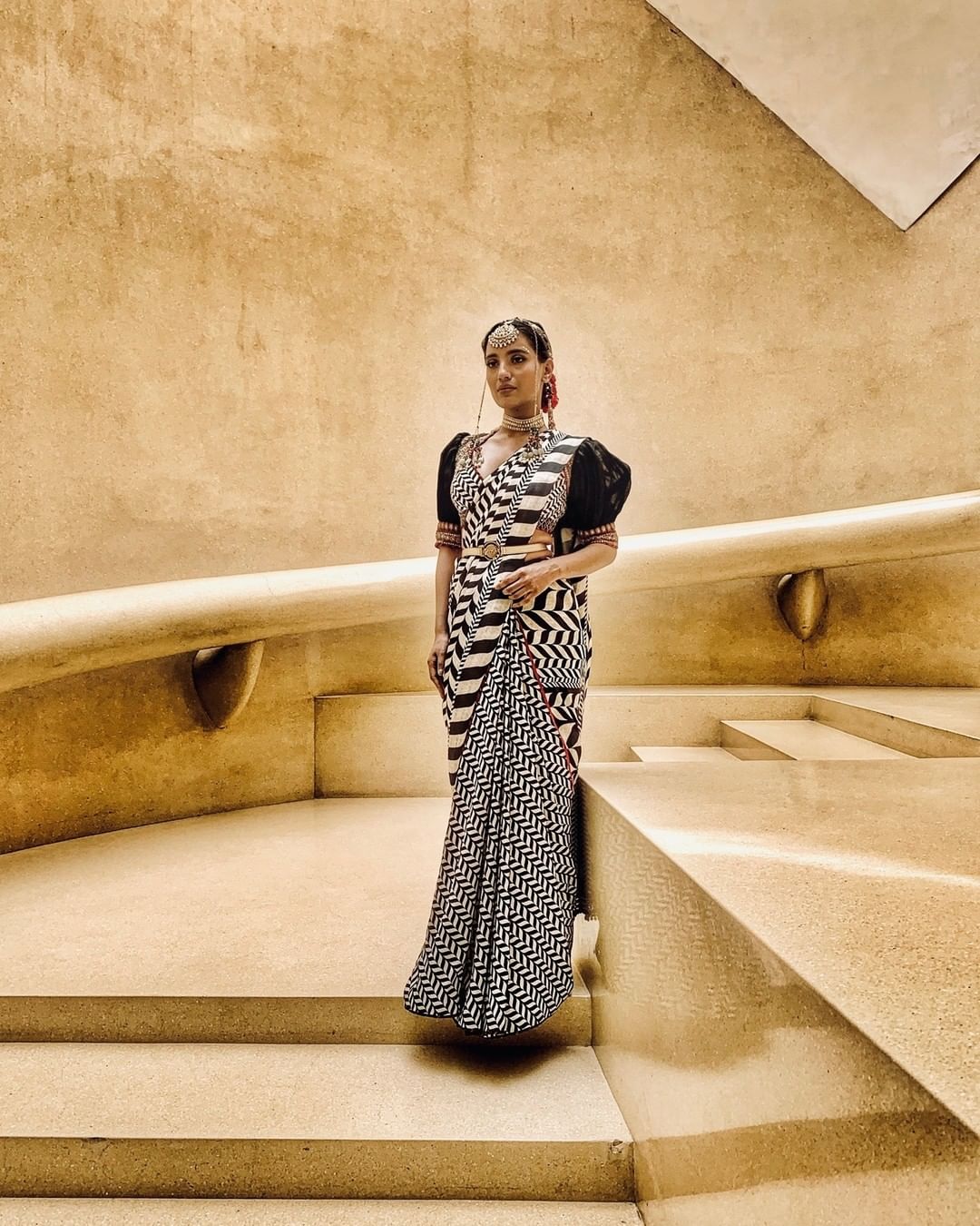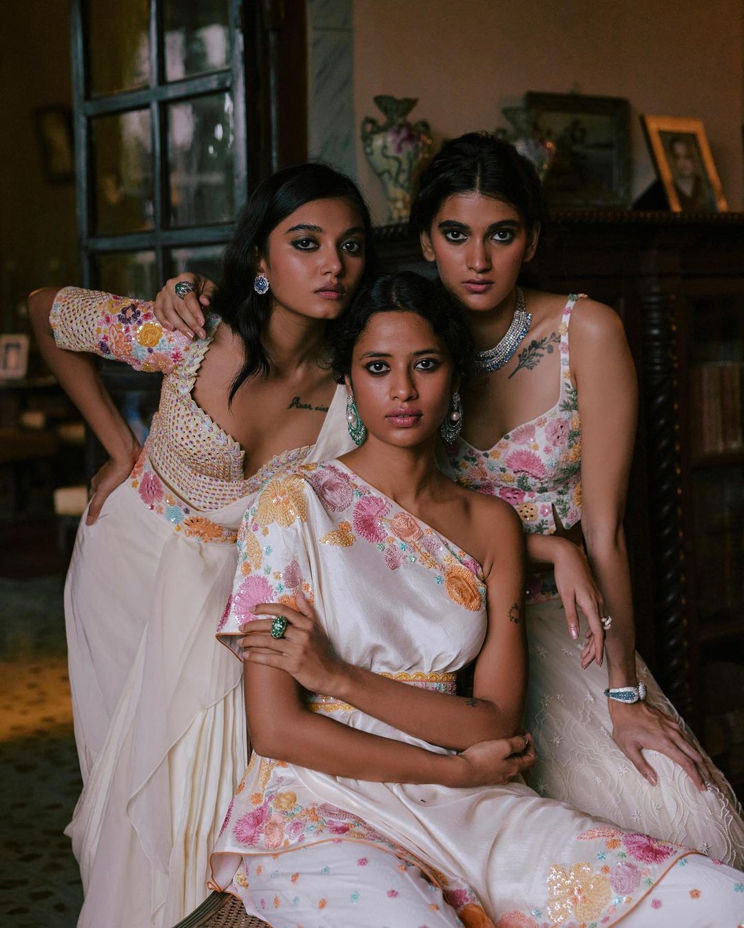 The label showcases 5 capsule collections: Temple Mauli, Bidri, Kutch Kantha, Sootra, and Molten Haweli. The collections are inspired by different crafts & techniques and architecture in the country; from the intricate art form of delicate bidri technique to Mughal architecture, each garment tells a story of traditional craft with a hint of modernity.