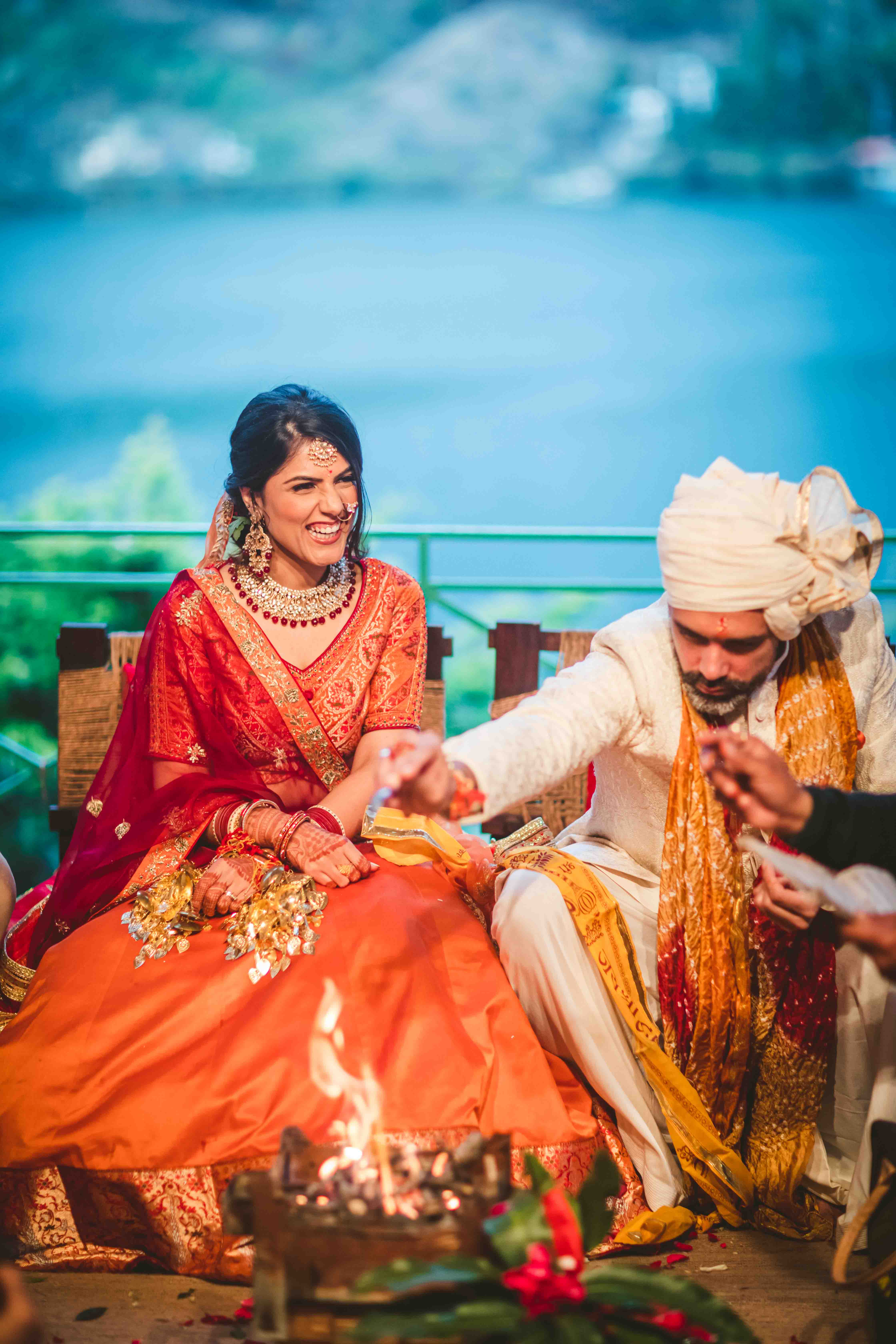Nestled in the midst of an oak forest, The Lake Resort in the Kumaon Hills of Uttarakhand is a resort straight out of a fairytale. Amidst foliage and a beautiful lake lies Naukuchiatal’s gigantic Lake Resort where Aakriti & Prateek decided to tie the knot. Inspired by the scenic beauty of the orchards and a mesmerizing oak forest, the wedding decor spoke volumes about the couple and their love for the outdoors. It didn’t look anything short of a paradise designed and put together by Aashna Saran Design.