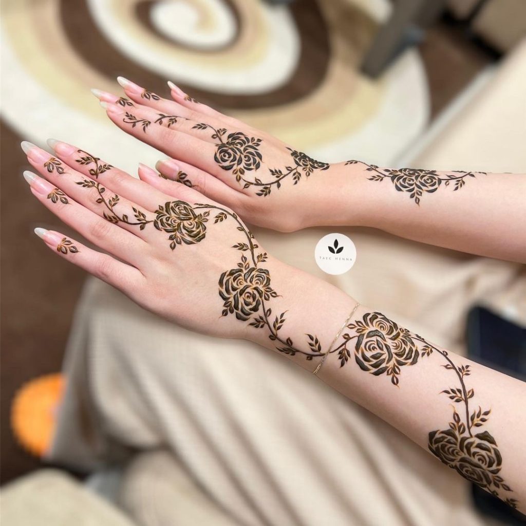 Minimal Arabic mehndi designs have become a timeless and elegant choice for those seeking understated grace on their special day. Known for delicate patterns and a focus on negative space, these designs offer a subtle yet refined allure making less truly more. Let’s explore some of these minimal designs we’ve curated for you today.