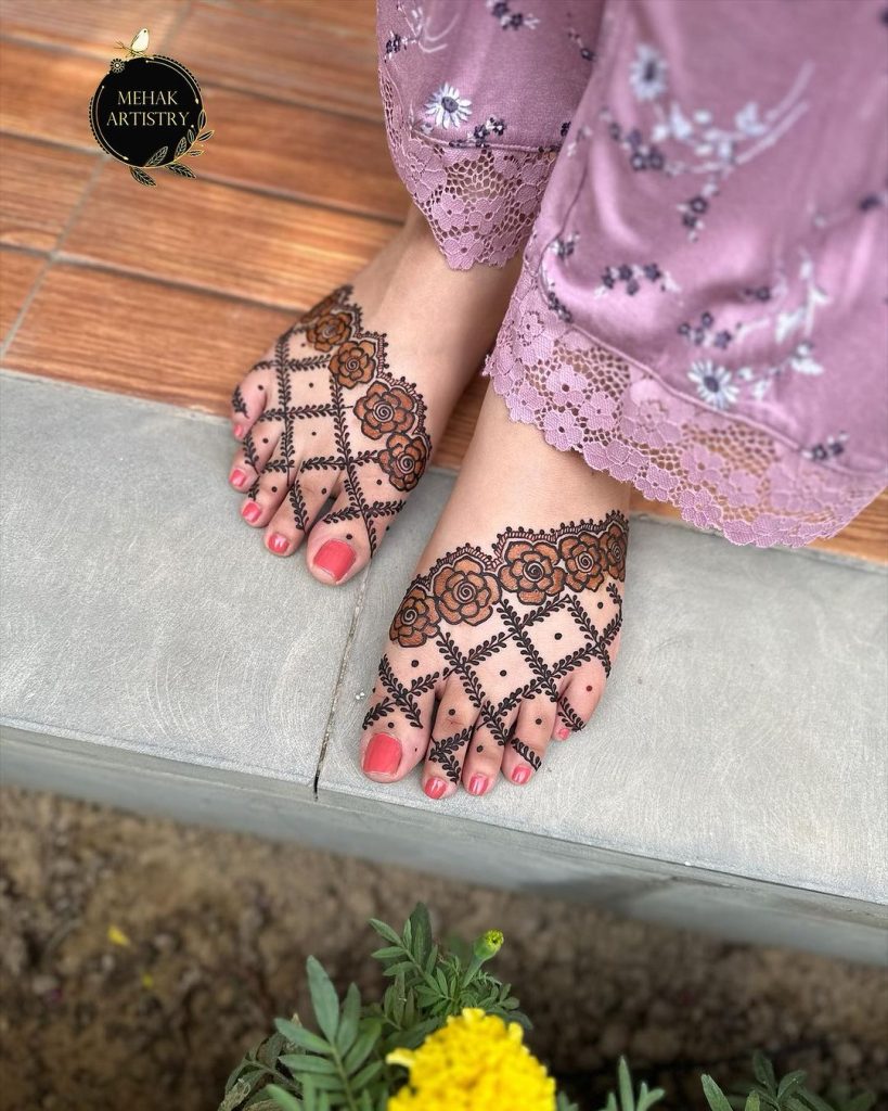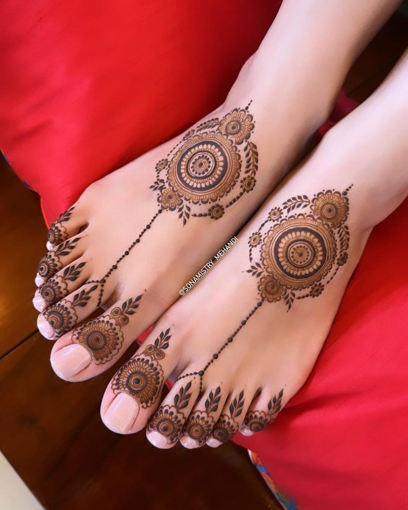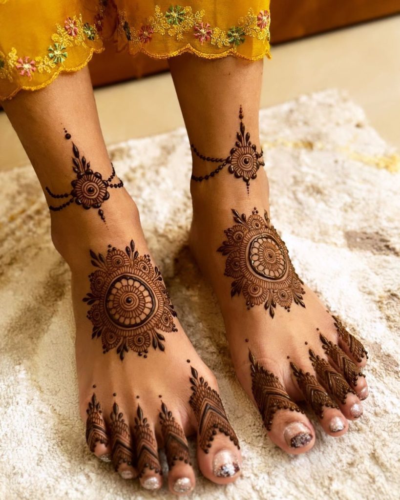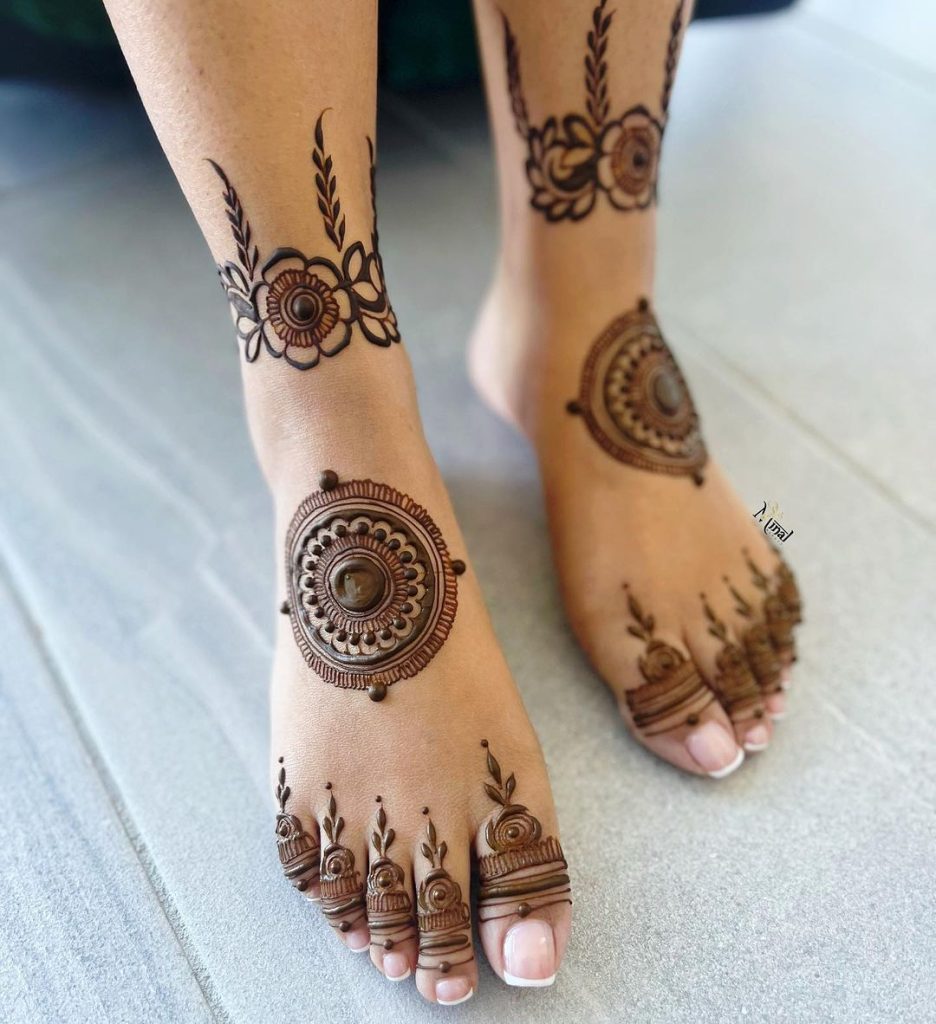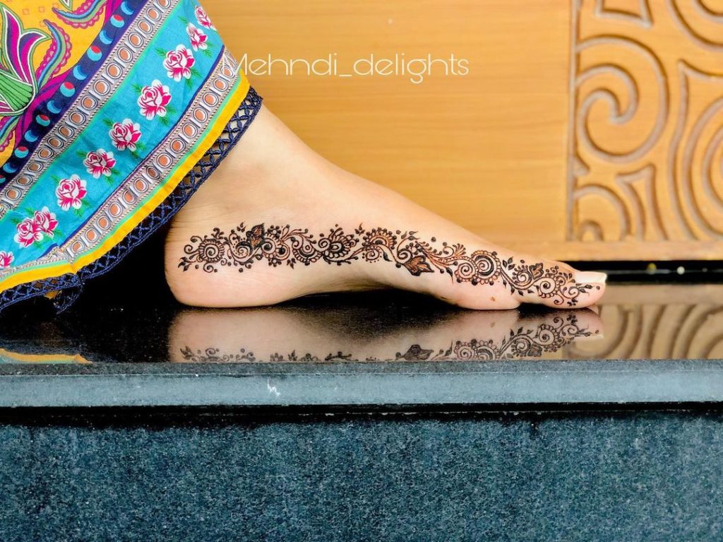 In a world where less is more, minimal mehndi designs emerge as the reigning trend for brides’ feet, offering a modern and chic alternative. These designs are versatile, ensuring they complement a wide range of bridal looks and themes. We’ve gathered a couple of mehndi designs you can get inspiration from.