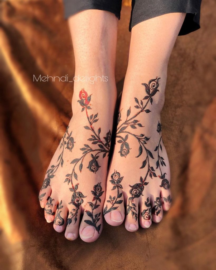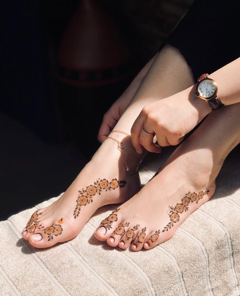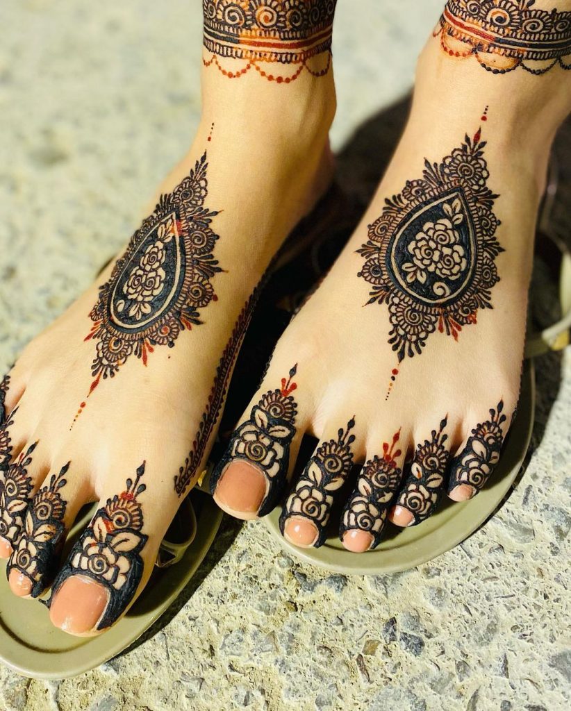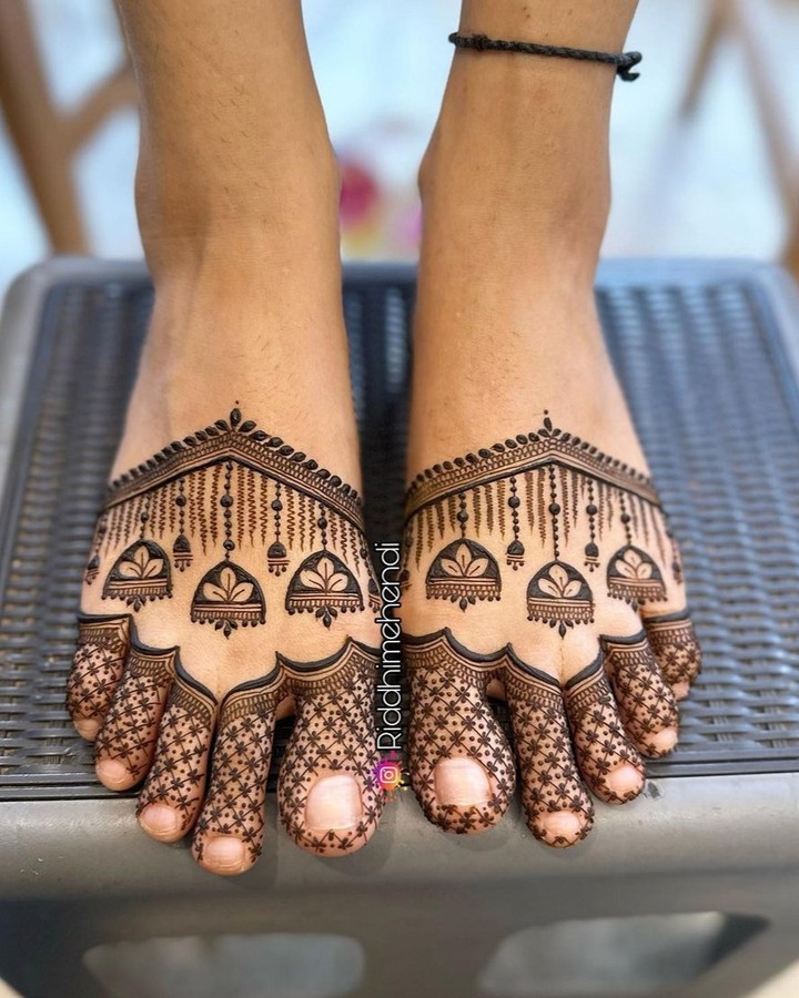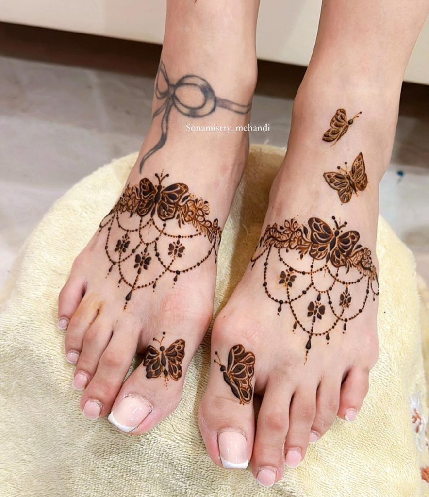 In a world where less is more, minimal mehndi designs emerge as the reigning trend for brides’ feet, offering a modern and chic alternative. These designs are versatile, ensuring they complement a wide range of bridal looks and themes. We’ve gathered a couple of mehndi designs you can get inspiration from.