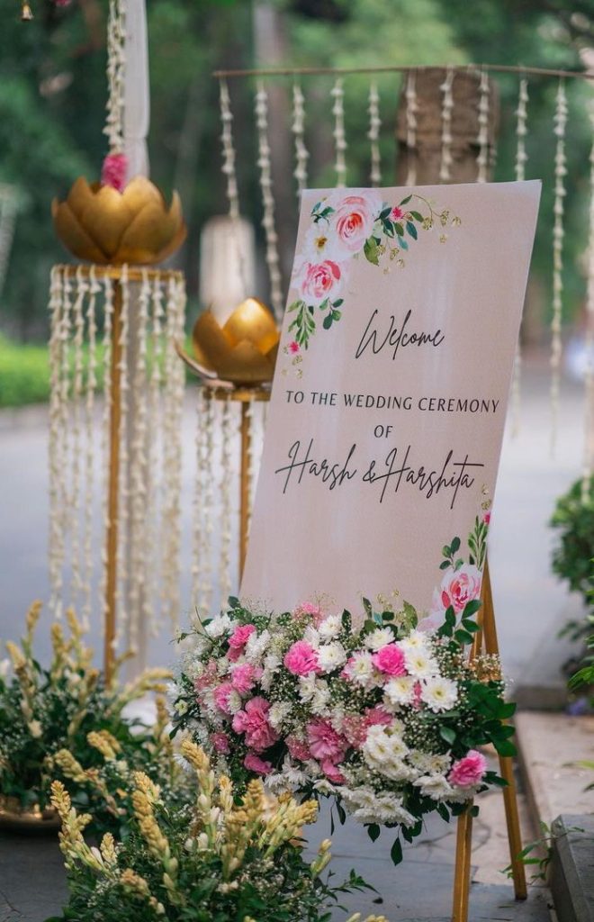Start your celebration off right with a warm and inviting welcome sign. Whether it’s adorned with flowers or simple calligraphy, this sign sets the tone for a day filled with love and joy.