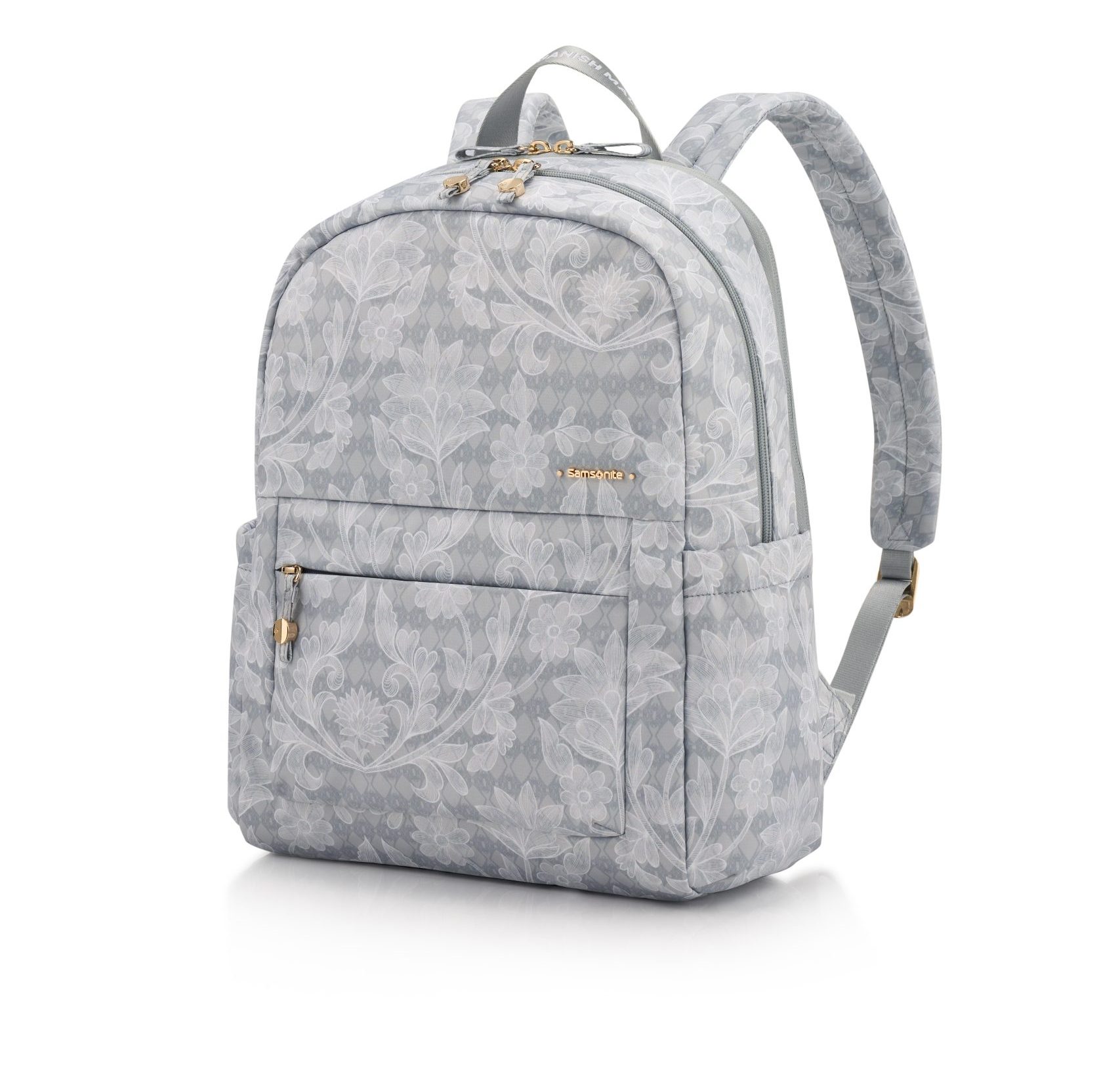 A luxurious backpack crafted with textured fabric and delicate motif accents—perfect for city breaks or business trips.
