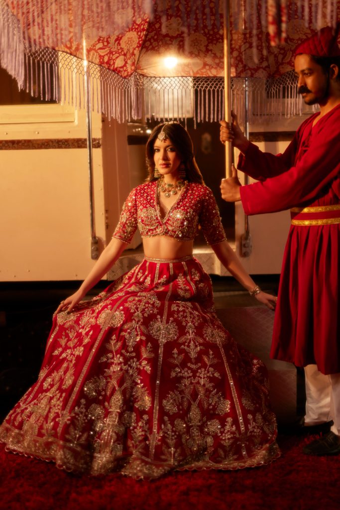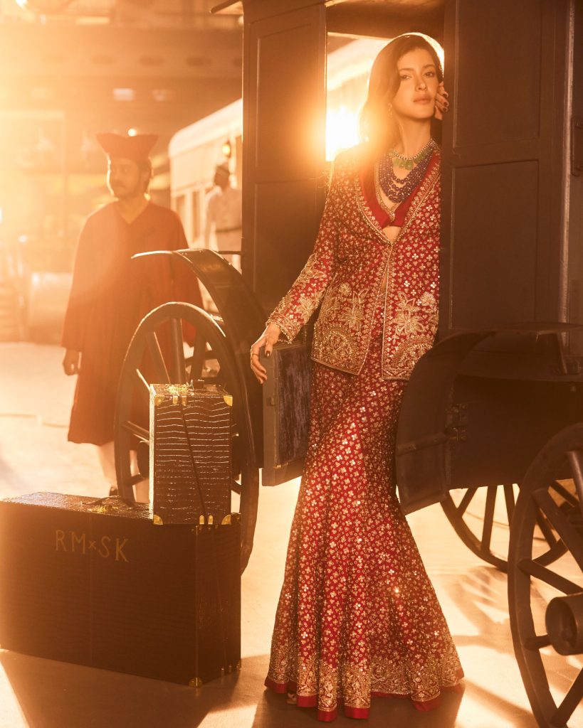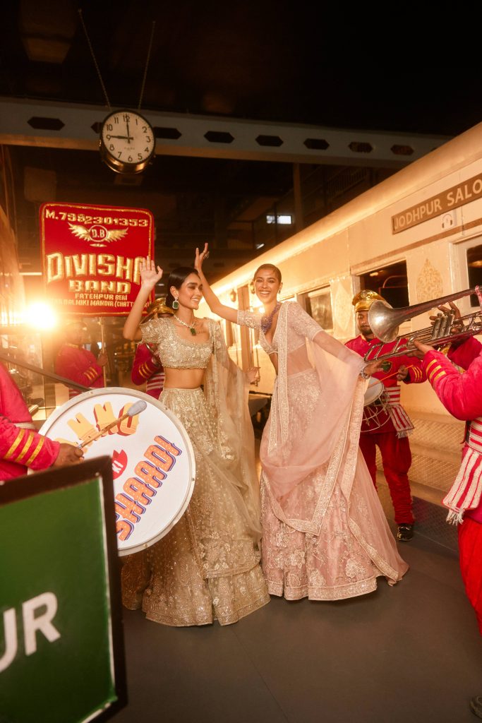 “To infuse a touch of nostalgia and differentiation into this campaign, we decided to experiment not only with the designs but also with the setup. We drew inspiration from the times we travelled on trains for weddings, cherishing the moments around it. Shanaya’s departure in her own baraat, set against the backdrop of a train journey, became the heart of our storytelling. This campaign is not just a showcase of bridal couture; it’s a celebration of memories, journeys, and the beautiful fusion of the past with the present.” – Ridhi Mehra