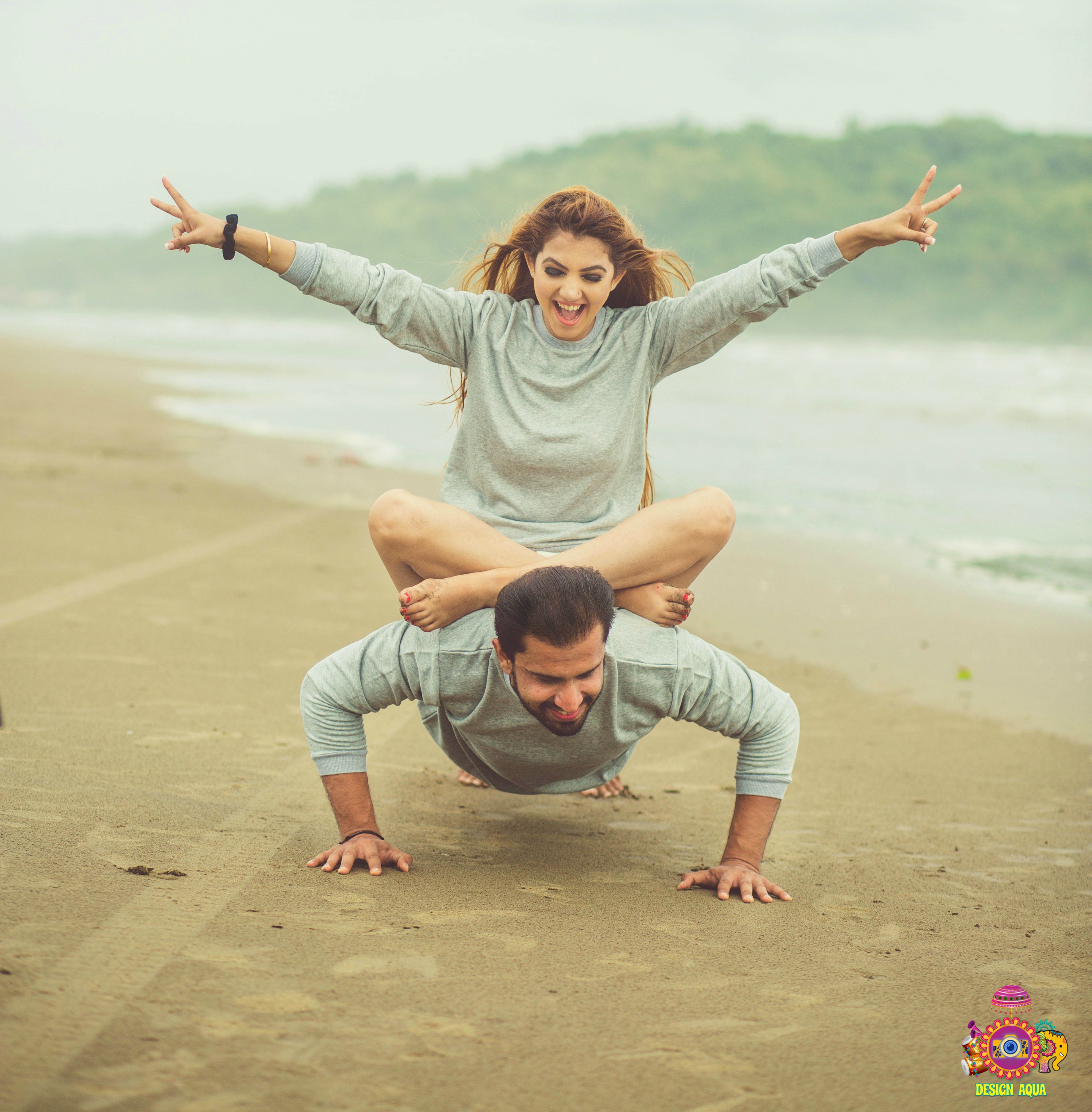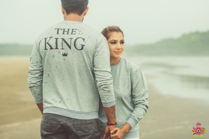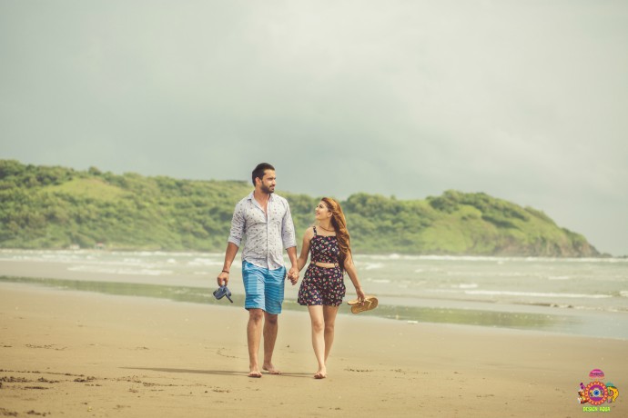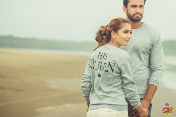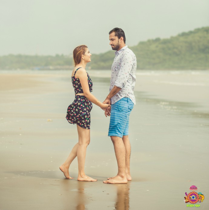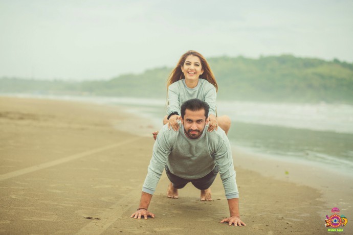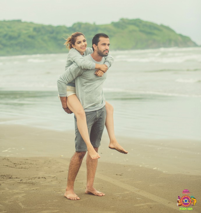 I didn’t have any plans to do my pre wedding until I found a concept. My clients, future brides, followers always kept on asking how it would be & what would I do. Suddenly I had this idea that since I am a photographer, why not shoot it myself?! So along with my team we flew to Goa. I didnt want to do wear all fancy clothes and do what I make my other couples do – I just wanted to have fun! I did wear a gown for one of the looks but the rest of the pre wedding was shot we being ourselves.