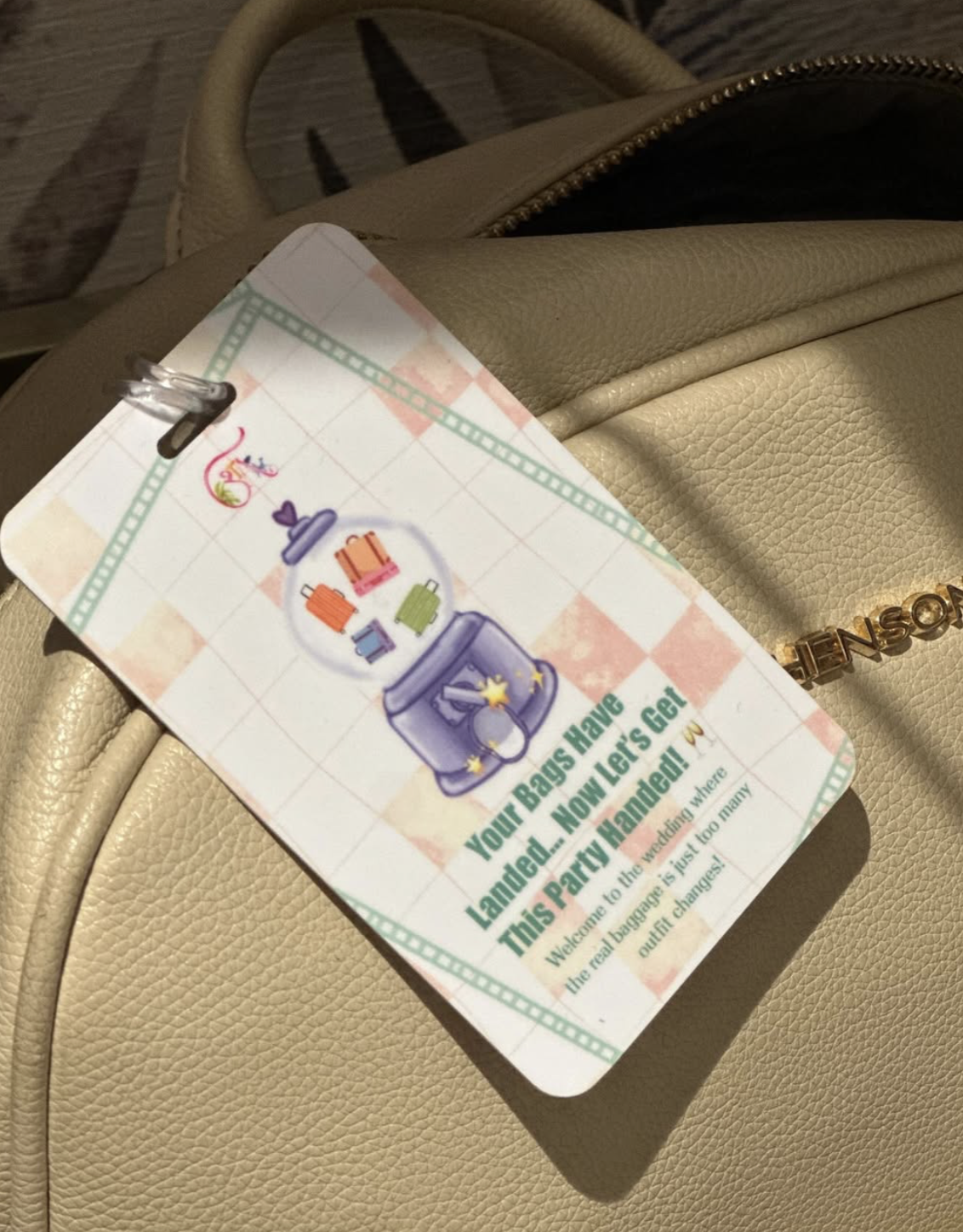 Add a personalised touch to your welcome hampers or guest favours with custom luggage tags featuring your logo, hashtag, or wedding date.