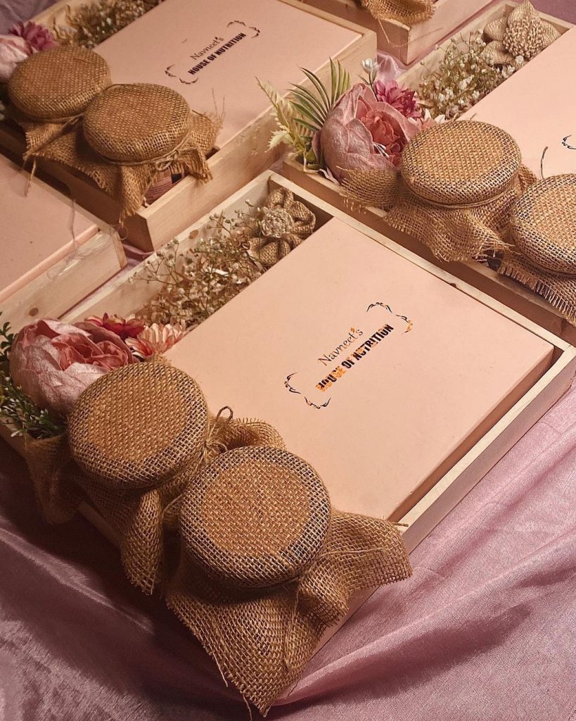 Navneet’s House of Nutrition provides a token of love to make weddings more special and aesthetic. Indulge in the timeless allure of Besan Badam Burfi, a cherished favourite made from cow ghee, almonds, and raw sugar. Their commitment to preserving age-old traditions is evident in every delightful bite. You can personalise your experience with customizable packaging, adding a unique touch to each sweet treat you share or savour.