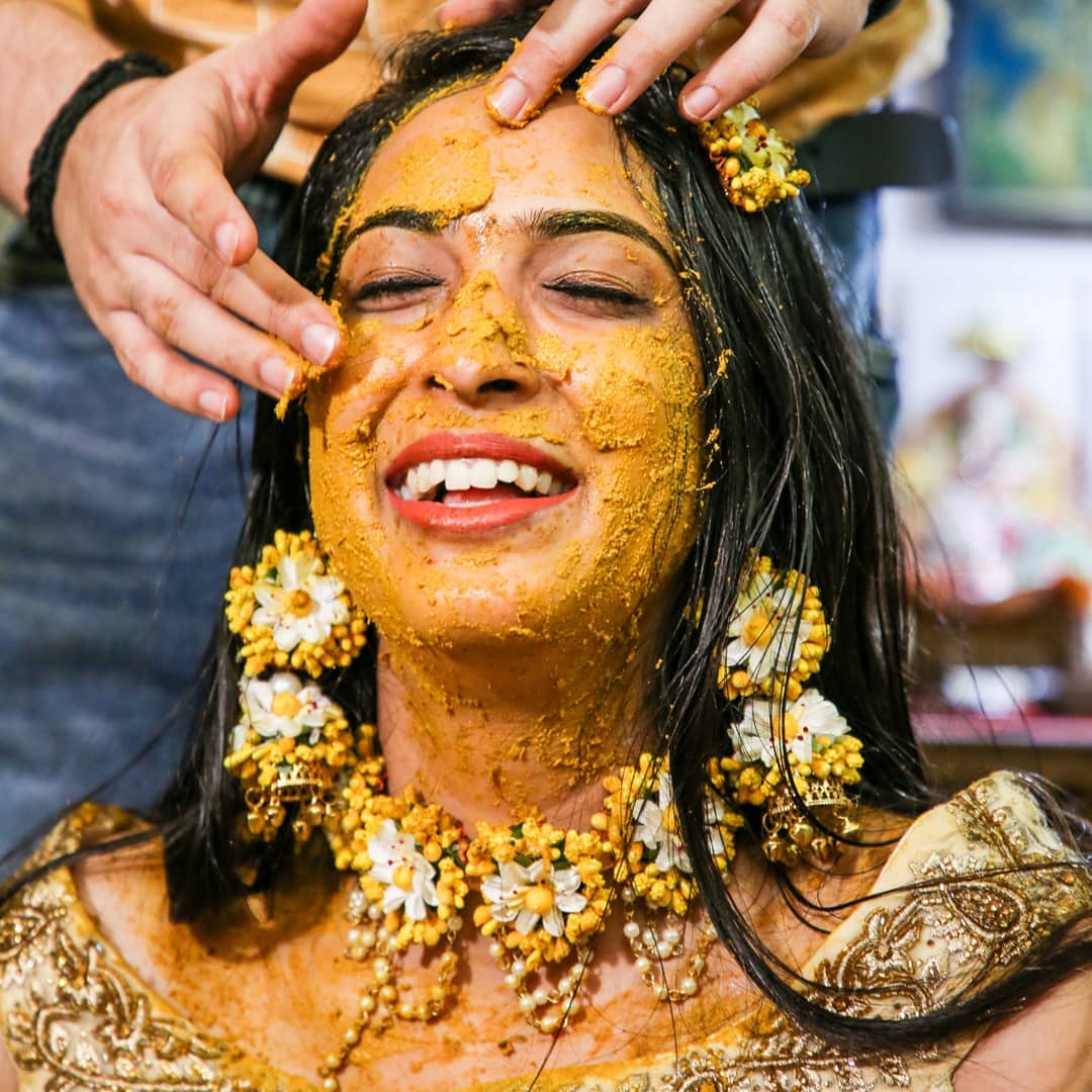 Bride enjoying her haldi ceremony was caught by the camera just at the right second and look how